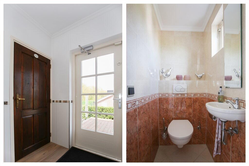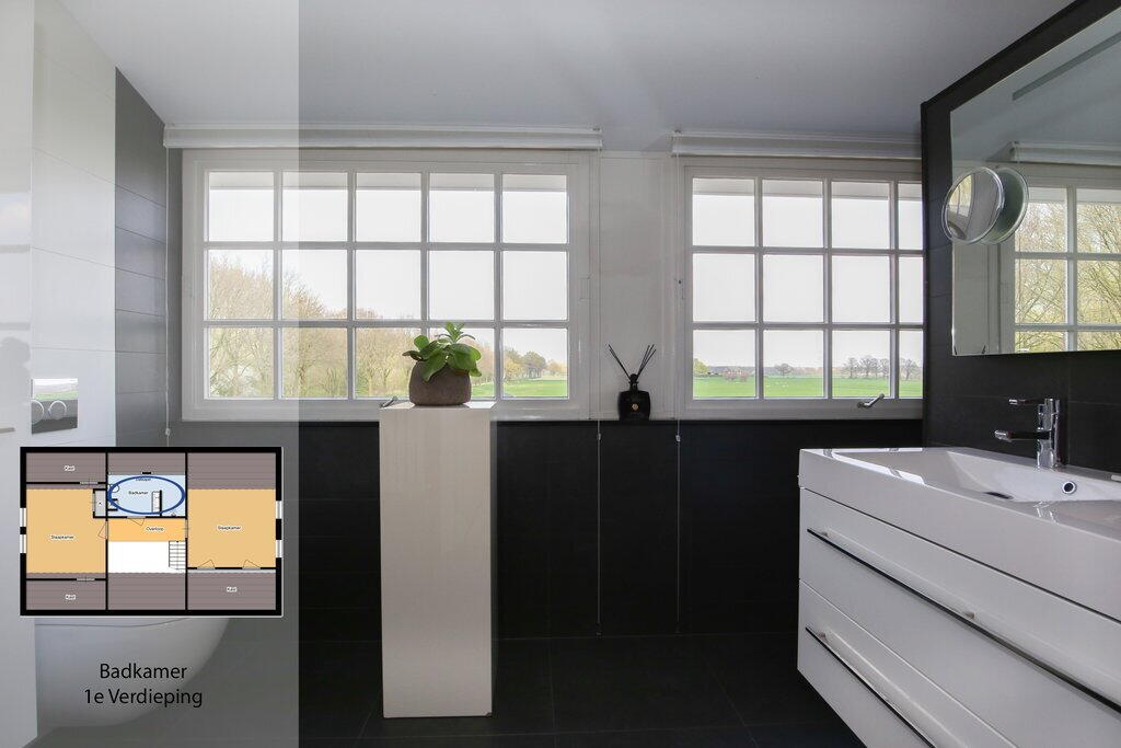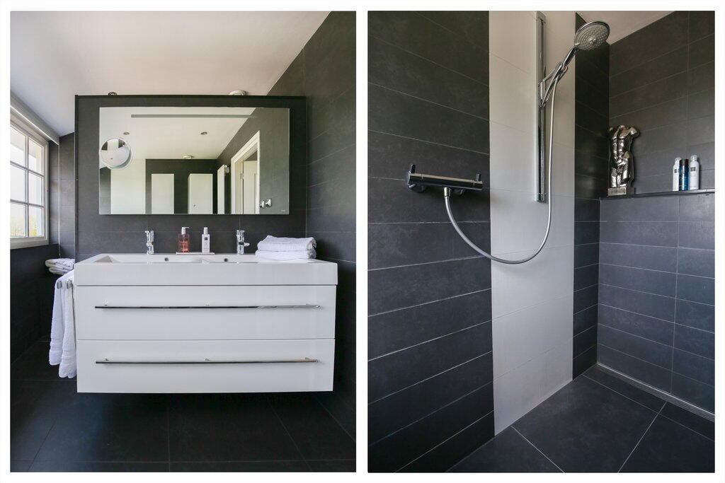 - Toilet, dubbele wastafel, wastafelmeubel, inloopdouche, vloerverwarming