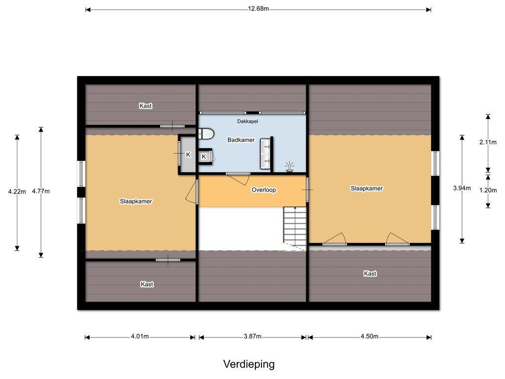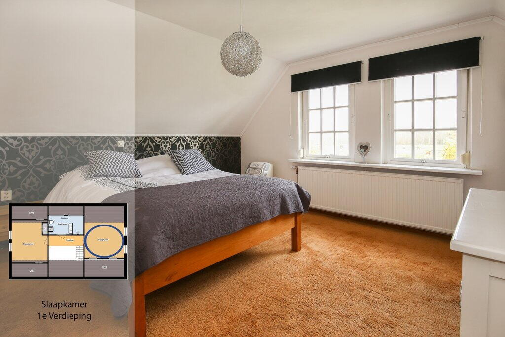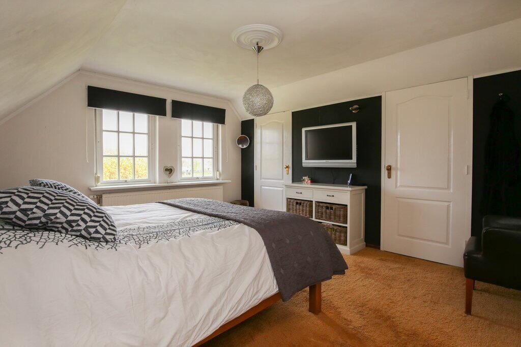 Overloop/vide, twee riante slaapkamers met ingebouwde kasten en een moderne badkamer met ruime inloopdouche, dubbel wastafelmeubel en 2e toilet. Bijzonder is dat de deze badkamer naast vloerverwarming ook deels muurverwarming heeft.
