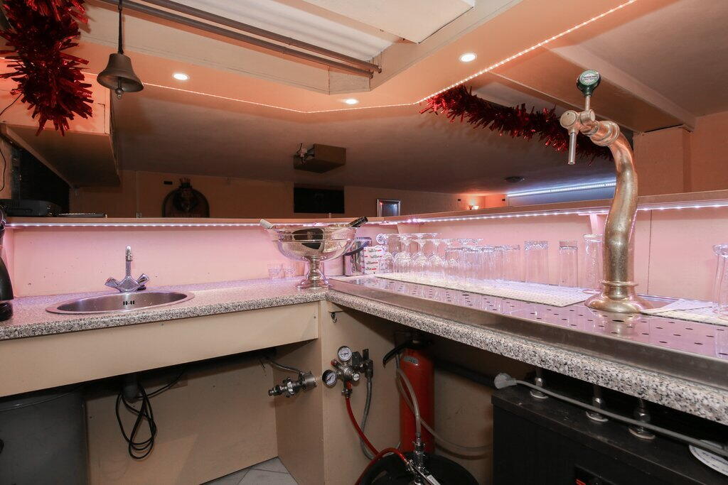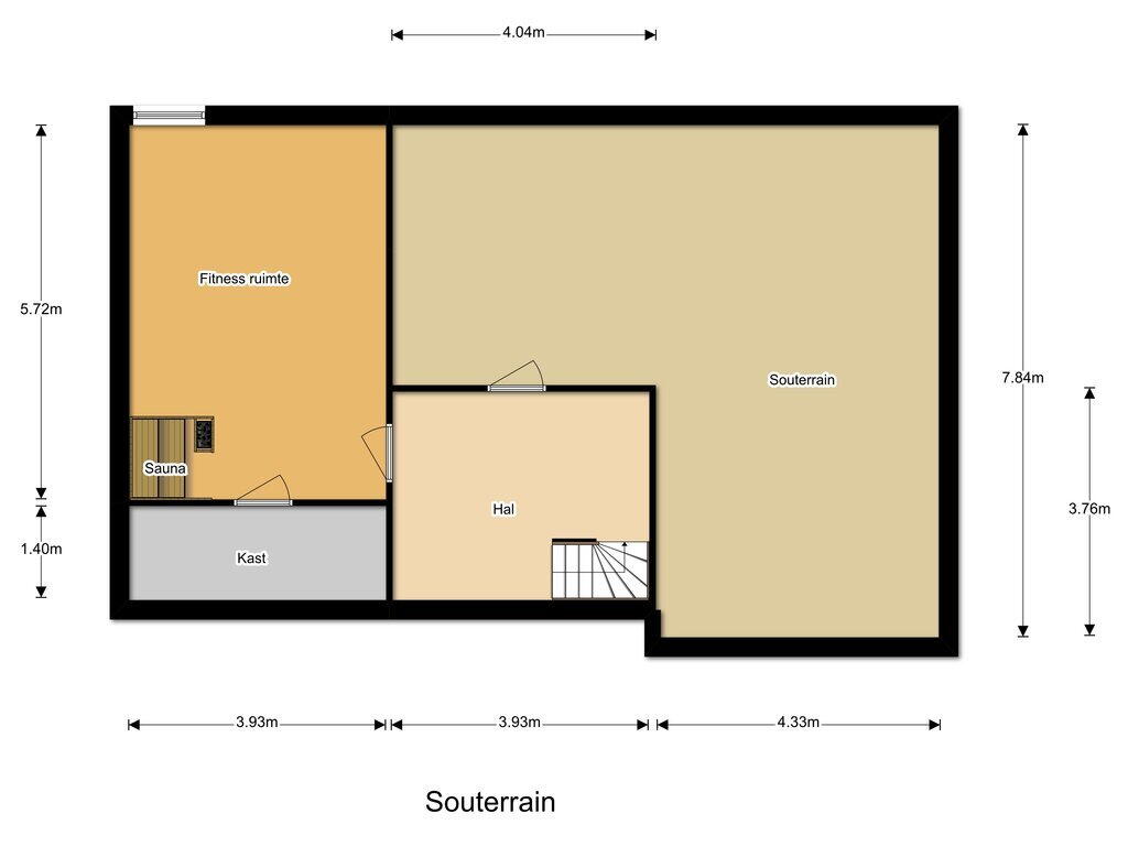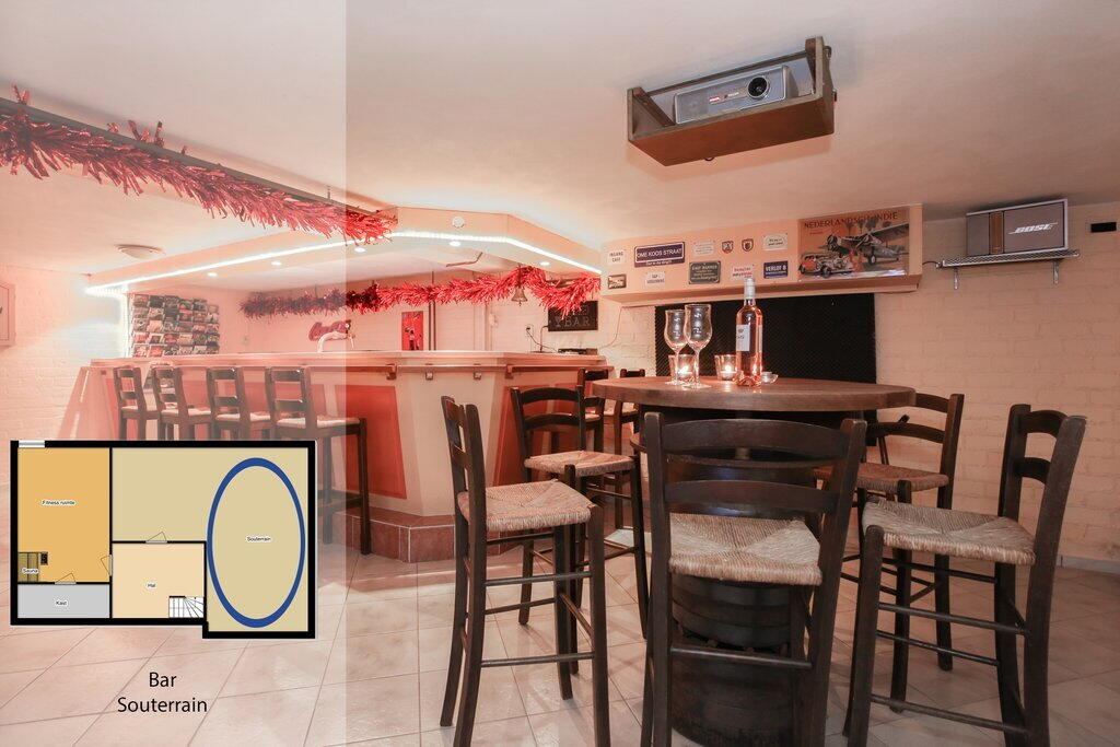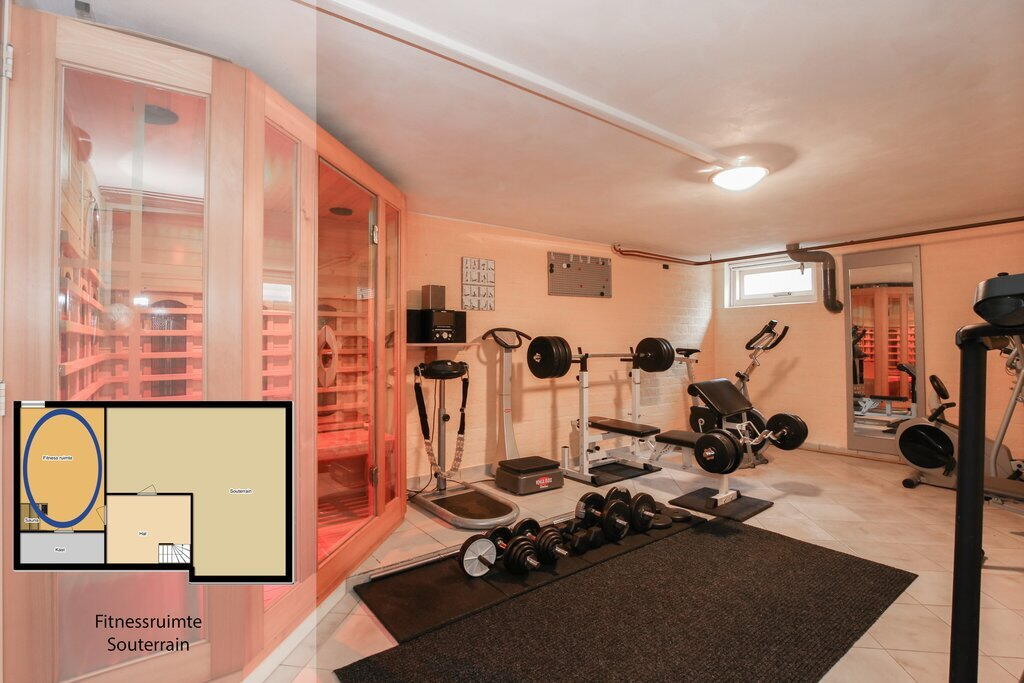 Vaste trap naar hal met toegang tot een prachtige relaxruimte compleet met bar, uitstekend voor ieder feestje te gebruiken of een mooie ruimte waar uw kinderen zich kunnen terugtrekken om met hun vrienden te gamen, tv te kijken of te chillen. Tevens is er een 2e ruimte die thans in gebruik is als fitnessruimte met sauna. Ook kan het souterrain, deels gebruikt worden voor het opbergen van spullen.