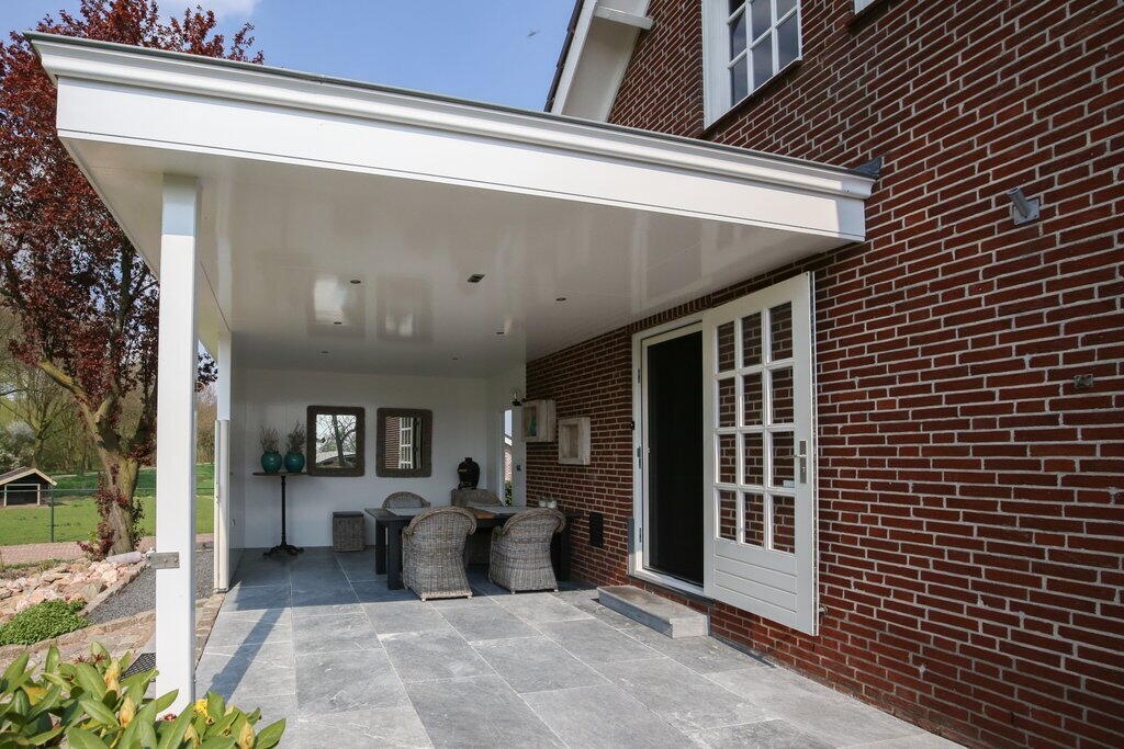 Aan de zijkant is een veranda gebouwd, tot in de late uurtjes is het mogelijk om hier gezellig te zitten en van de ondergaande zon te kunnen genieten.